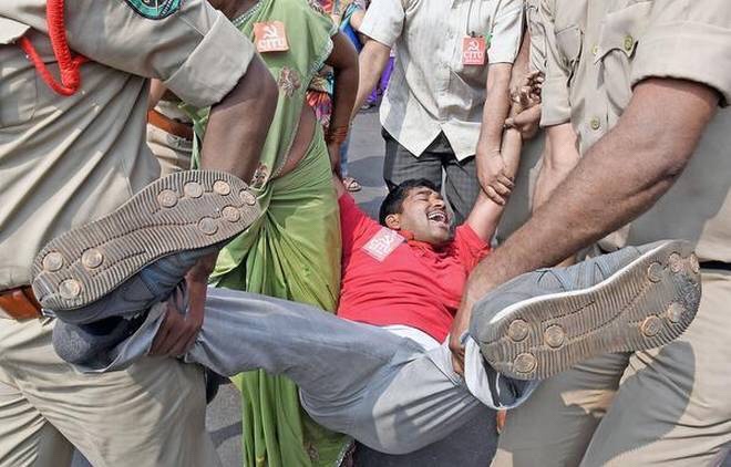Hindistan’da liman işçilerinin özelleştirmelere karşı düzenledikleri eyleme polis saldırdı