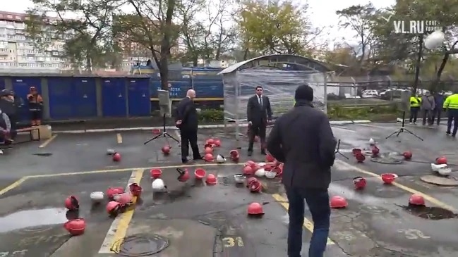 Rusya’da grevdeki liman işçileri şirket yöneticilerini kask yağmuruna tuttu