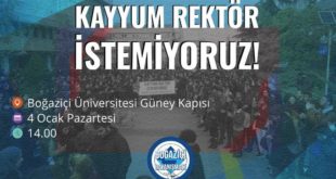 kategori: HaberlerOcak 2020’de Haliç Üniversitesi Rektörlüğü’ne atanan ve 2015 seçimlerinde AKP milletvekili aday adayı olan Melih Bulu’nun Cumhurbaşkanı Erdoğan tarafından Boğaziçi Üniversitesi’ne rektör olarak atanmasına karşı tepkiler artarak sürüyor. Atama kararına karşı sosyal medyada binlerce kişi #KayyumRektörİstemiyoruz ve #KayyumaGeçitYok etiketleriyle tepki gösterirken, Boğaziçi Ünivesitesi öğrencileri Pazartesi günü dersleri boykot edecek ve üniversite girişinde eylem gerçekleştirecek. Boğaziçi…