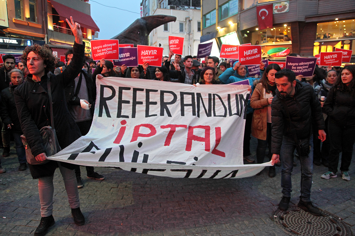 kategori: HaberlerCumhurbaşkanına sınırsız yetkiler veren Anayasa değişikliği referandumunda küçük farkla ‘evet’ sonucunun çıktığı açıklandı. Yüksek Seçim Kurulu verilerine göre oy kulananların % 51,21’i Evet, % 48.79’u Hayır dedi. Gece saatlerinde YSK başkanı Sadi Güven’in “Mühürsüz zarfları geçerli saydık.” açıklamalarından sonra seçimlerde hile yapıldığı kuşkuları güç kazandı. Pek çok yerde insanlar sokaklara çıkarak protesto gösterileri düzenledi. Sosyal…