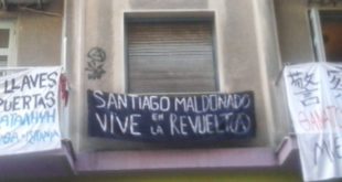 kategori: HaberlerYunanistan’ın başkenti Atina’nın Exarchia bölgesinde bulunan 58 işgal evine Arjantin devleti tarafından katledilen anarşist Santiago Maldonado anısına pankartlar asıldı. Contra Info internet sitesinde konuyla ilgili yapılan açıklamada; “Anarşist yoldaş Santiago Maldonado’nun kaybedilmesinin ve Arjantin devletinin ellerinde katledilmesinden dört ay sonra Güney Amerika’daki yoldaşlarımız selam gönderiyoruz ve ‘Kara Aralık’ta isyan ateşini canlı tutmaya çağırıyoruz.” ifadesi kullanıldı.…