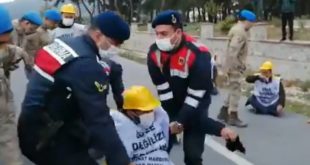 kategori: HaberlerVerilmeyen hakları için direnişe başlayan ve 24 gündür Kırkağaç Çamlık’ta bekleyişlerini sürdüren maden işçileri, verilen sözlerin tutulmaması nedeniyle Ankara’ya doğru yeniden yürüyüşe başladı. “Korkmuyoruz! Yürüyoruz”, “Direne direne kazanacağız”, “Jandarma yolu aç, geliyoruz Ankara” sloganlarıyla yürüyüşe başlayan işçilerin önü jandarma tarafından kesildi. Engellemeye rağmen yürüyüş kararlılıklarını sürdüren işçilere bir süre sonra jandarma saldırdı. Bir madencinin yaralandığı…