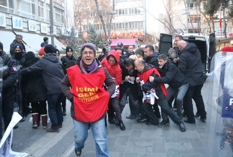 kategori: HaberlerAnkara Yüksel Caddesi’nde 4 yılı aşkın süredir “İşimizi geri istiyoruz” talebiyle eylem yapan ve 13 Ağustos sabah saatlerinde polislerce düzenlenen baskınla gözaltına alınan Yüksel direnişçileri tutuklandı. 13 Ağustos’ta gerçekleşen baskınlarda, Kanun Hükmünde Kararname (KHK) ile ihraç edilen öğretmen Acun Karadağ, Nazan Bozkurt, Mehmet Dersulu, Gülnaz Bozkurt, Armağan Özbaş, Mahmut Konuk ve Alev Şahin gözaltına alınmıştı.…