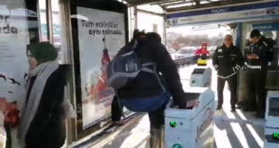 kategori: HaberlerSosyalist Gençlik Dernekleri Federasyonu (SGDF) üyeleri, İstanbul Büyükşehir Belediyesi’nin ulaşıma yaptığı yüzde 35 zammı İncirli metrobüs istasyonunda turnikeden atlayarak protesto etti. SGDF Eşbaşkanı Alev Özkiraz eylemde yaptığı konuşmada, “İstanbul Büyükşehir Belediye Başkanı Ekrem İmamoğlu çıktı ‘halkımız haklıdır’ dedi. Evet haklıyız. Ulaşım zamlarını kabul etmiyoruz” dedi. Yapılan konuşmanın andından SGDF üyeleri turnikelerden atlayarak geçti. Gençlerin eylemini…