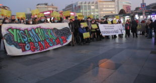kategori: HaberlerTBMM Genel Kuruluna getirilecek “Maden ve Enerji Kanunu”na ilişkin değişiklikler içeren torba yasaya karşı yaşam savunucuları İstanbul Kadıköy’de bir araya geldi. Maden ve enerji şirketlerine sınırsız imtiyazlar tanıyan yasanın geri çekilmesini isteyen eylemciler Kadıköy ilçesindeki Eminönü İskelesi önünde basın açıklaması yaptı. Eylemde “Yaşam hakkı torbaya sığmaz” ve “Torba yasa doğanın ölüm fermanıdır, durduracağız” pankartları açıldı.…
