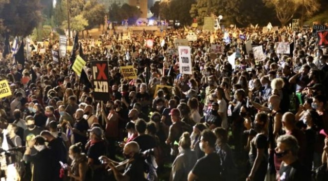 kategori: Haberlerİsrail’de hükümet karşıtı eylemler sürüyor. Ülke çapında binlerce kişi Netanyahu’nun istifası talebiyle sokaktaydı. Tel Aviv ve Kudüs’ün batısının yanı sıra birçok kentte eylem düzenlenirken, Netanyahu’nun Kudüs’teki evi ile Akdeniz kıyısındaki yazlık konutunun önünde de eylemler vardı. Yolsuzluk nedeniyle hakkında devam eden pek çok soruşturma bulunan Netanyahu’nun konutunun önünde toplanan yaklaşık 15 bin kişi, tencere tava…