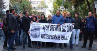 kategori: HaberlerYüksel Direnişi’nin 346’ncı gününde yine polis saldırısı yaşandı. Polisin, saldırısı sonucu 9 kişi gözaltına alındı. Yüksel’de 346 gününe giren “İşimizi geri istiyoruz” eyleminde yapılmak istenen basın açıklamasına polis saldırdı. Eylemde 9 kişi darp edilerek gözaltına alındı. Açlık grevindeki direnişçiler akademisyen Nuriye Gülmen ve öğretmen Semih Özakça’nın açlık grevi eylemi 224’üncü gününe girerken, Yüksel Caddesi’nde başlatılan…